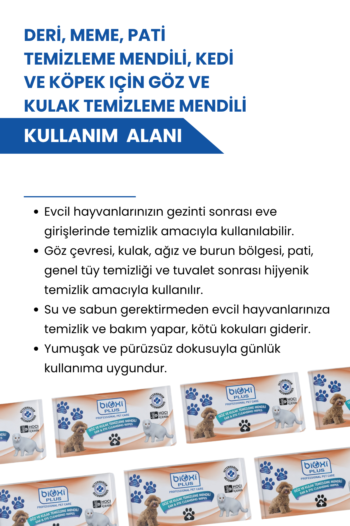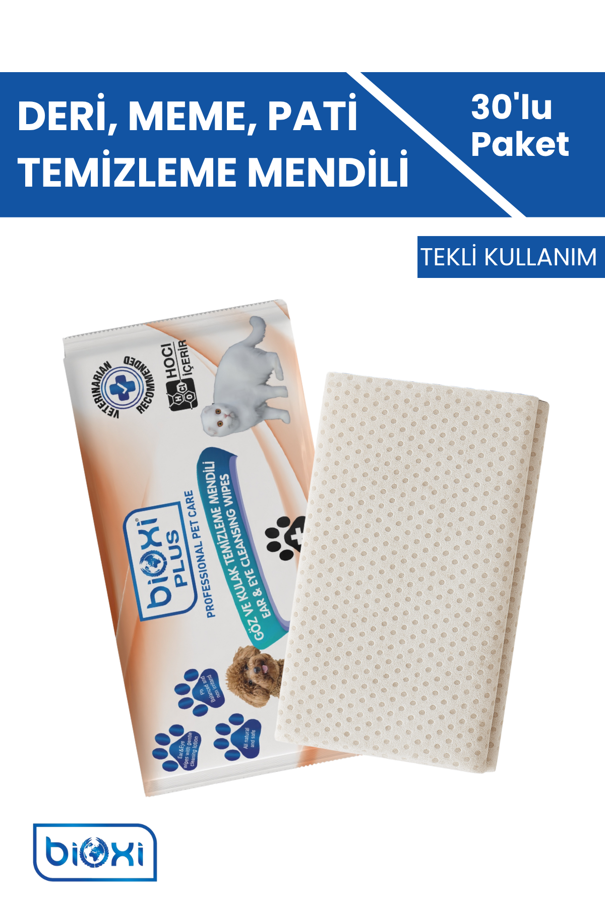 Bioxi® Çok Amaçlı Temizleme Mendili, evcil hayvanların günlük hijyenini güvenli, pratik ve etkili bir şekilde sağlamanın en kolay yoludur.