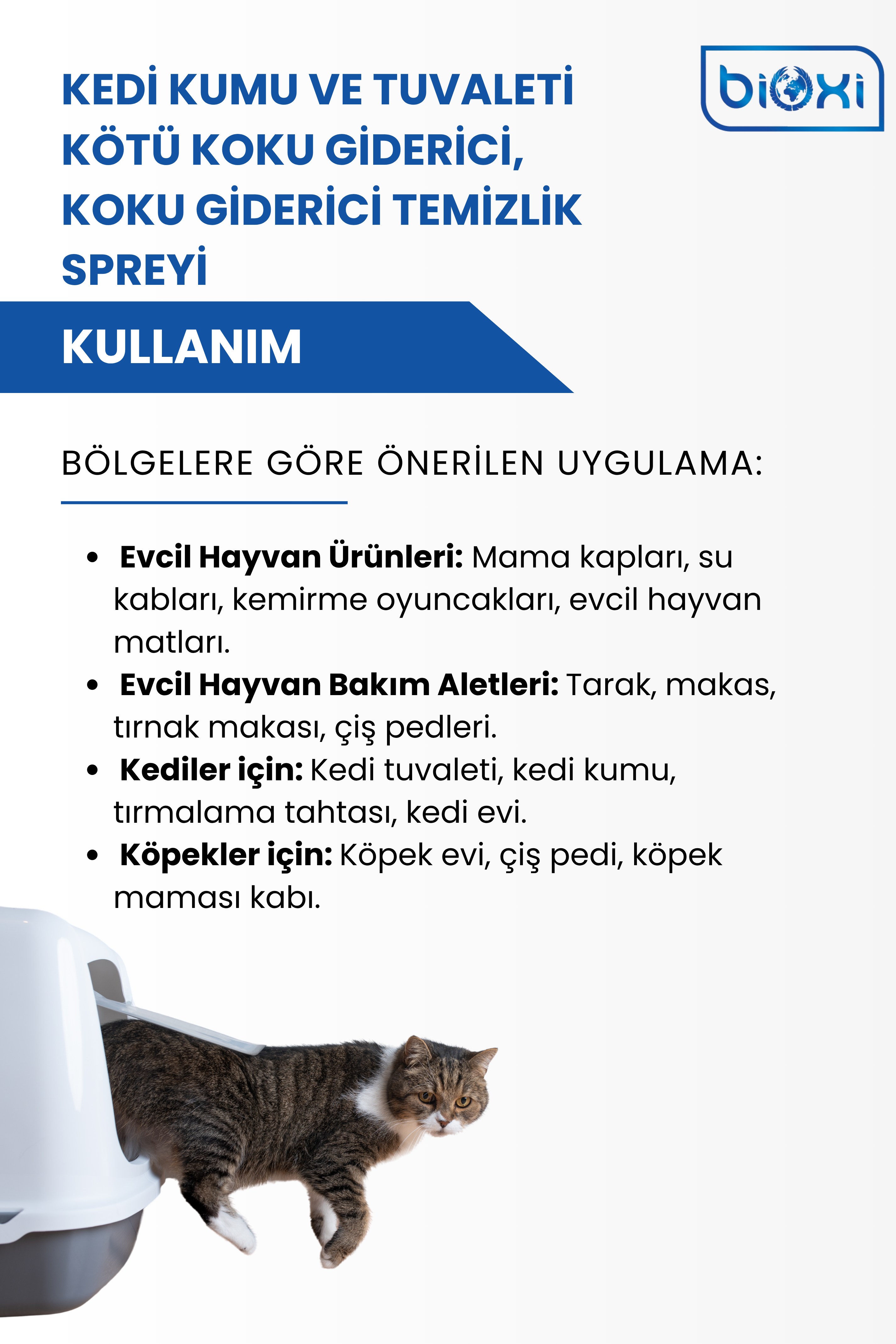 Bioxi® Evcil Hayvanlar için Koku Giderici Dezenfektan, evcil hayvanlarınıza zarar vermeden etkili, güvenli ve sık kullanıma uygun hijyen çözümü sunar.