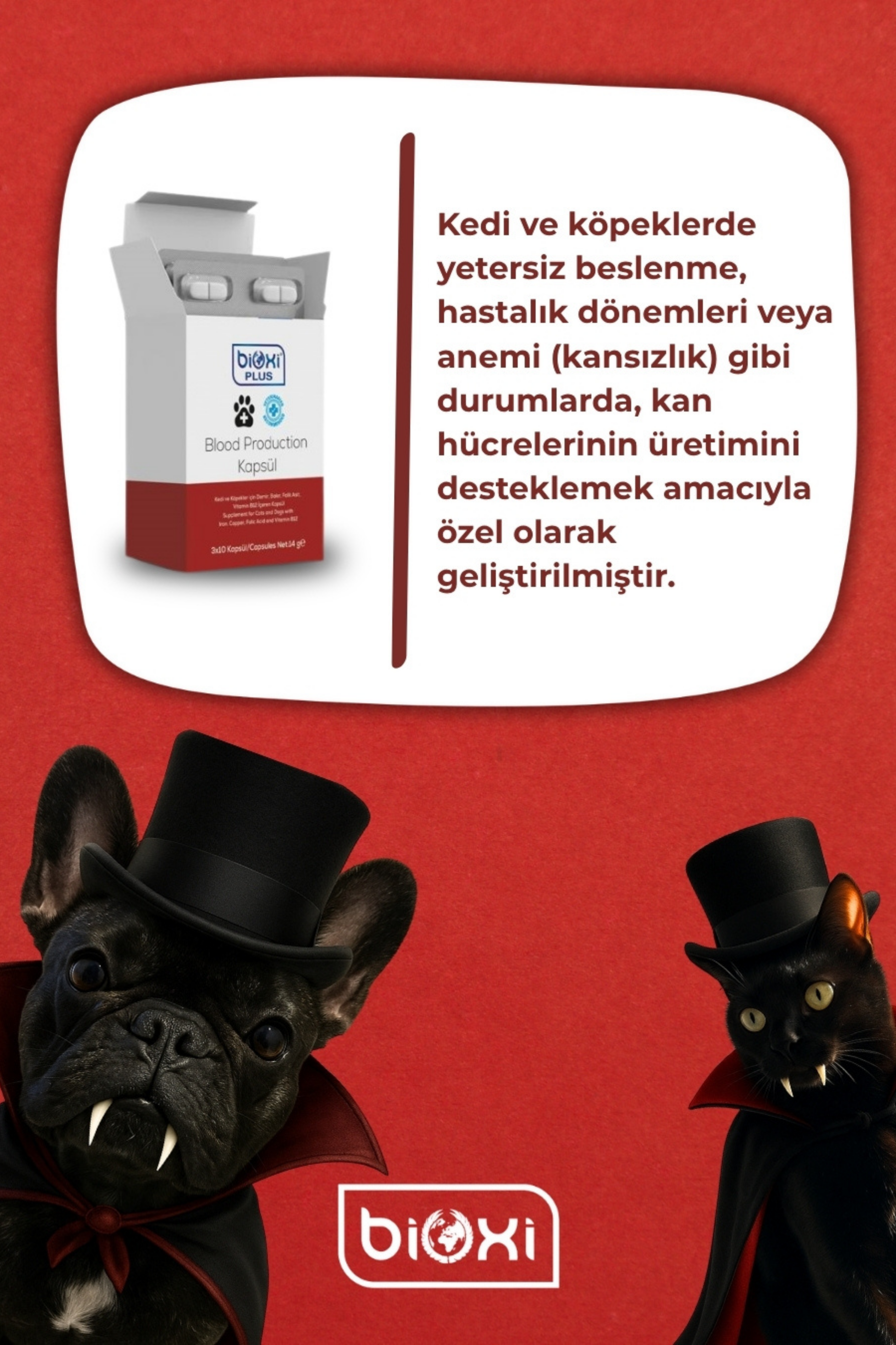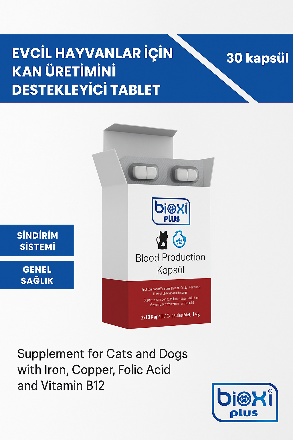 Evcil dostlarınızın sağlıklı kan üretimi ve güçlü bağışıklık sistemi için özel olarak geliştirilmiş tablet! Bioxi® Blood Production, kediler ve köpekler için doğal ve faydalı bileşenlerle formüle edilmiştir.