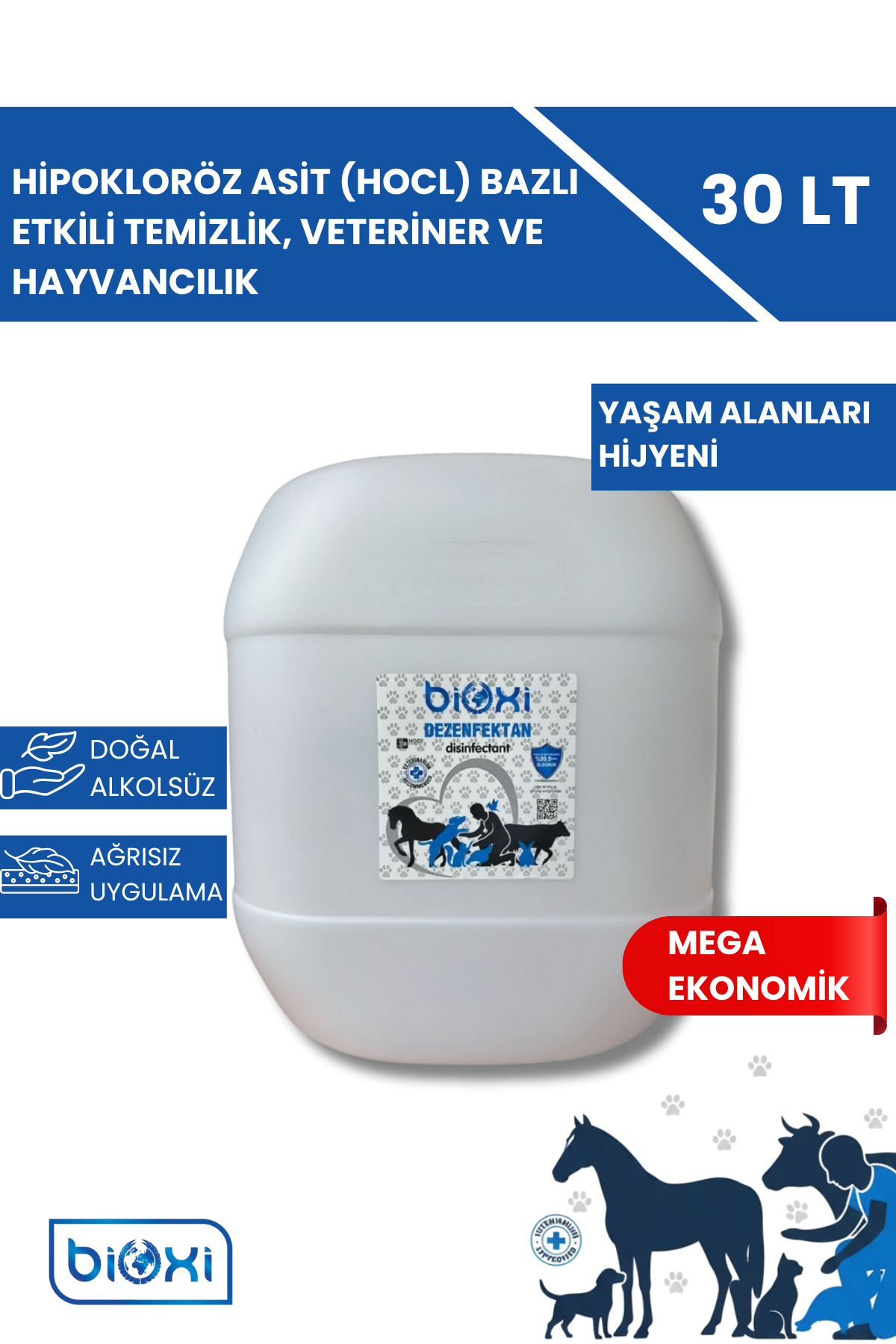 Bioxi® Veteriner ve Hayvan Dezenfektan | Hipokloröz Asit (HOCl) Bazlı Etkili Hijyen Çözümü